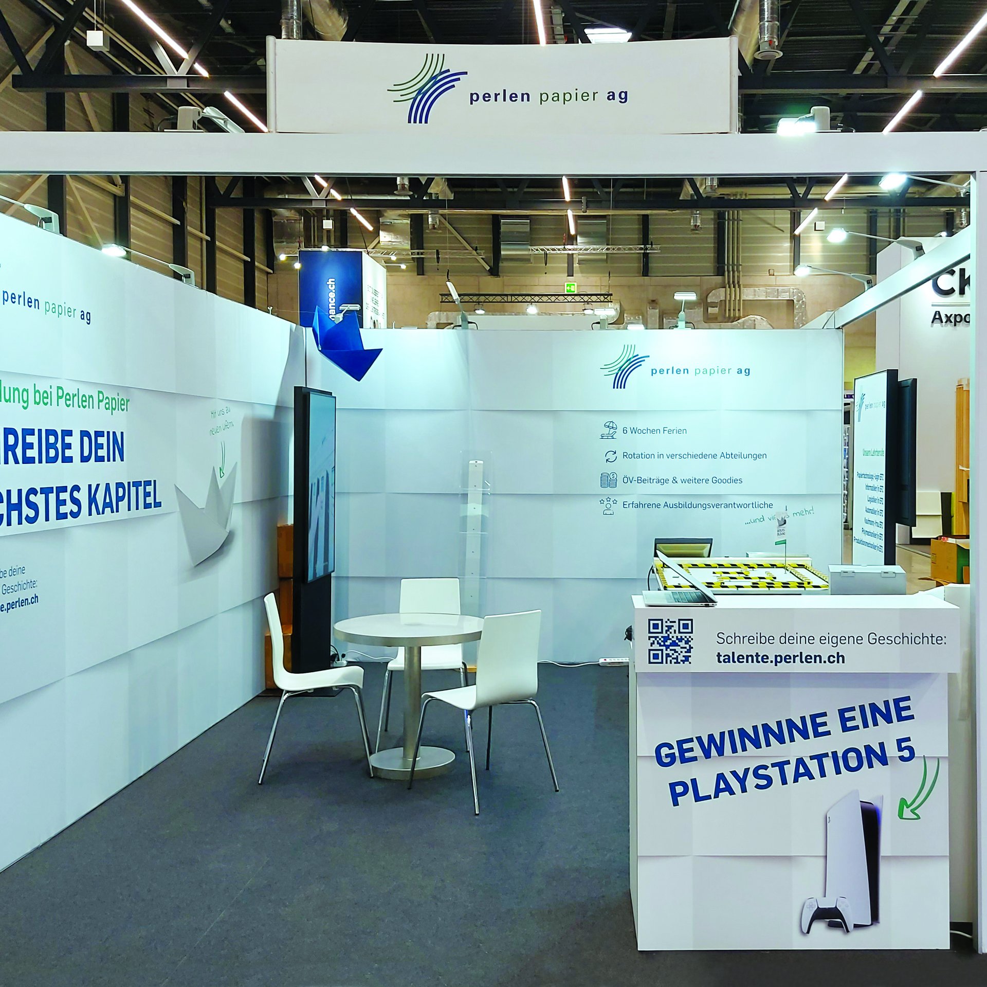 Für die Berufsbildungsmesse ZEBI durften wir das Konzept und das Design des Messetandes der Perlen Papier AG übernehmen.